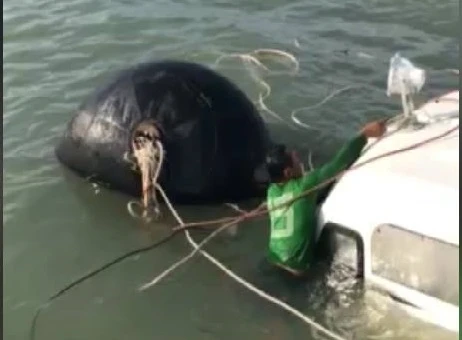 Đang trục vớt tàu cao tốc gặp sự cố sáng nay. Ảnh: H.K