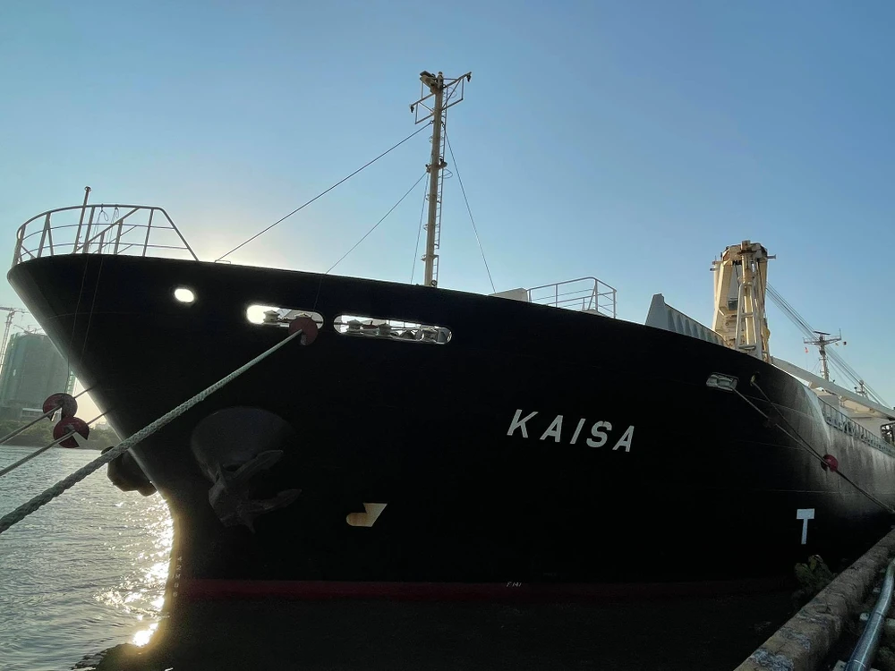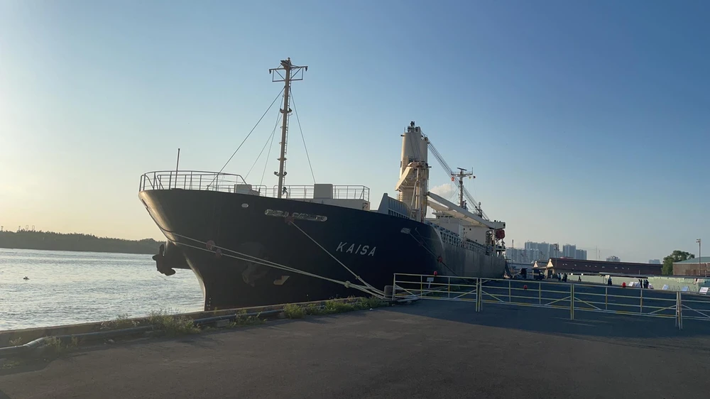 Hơn 6 giờ sáng ngày 10-5, những hình ảnh đầu tiên về tàu Kaisa chở đoàn tàu số 2 đã chính thức cập cảng Khánh Hội.