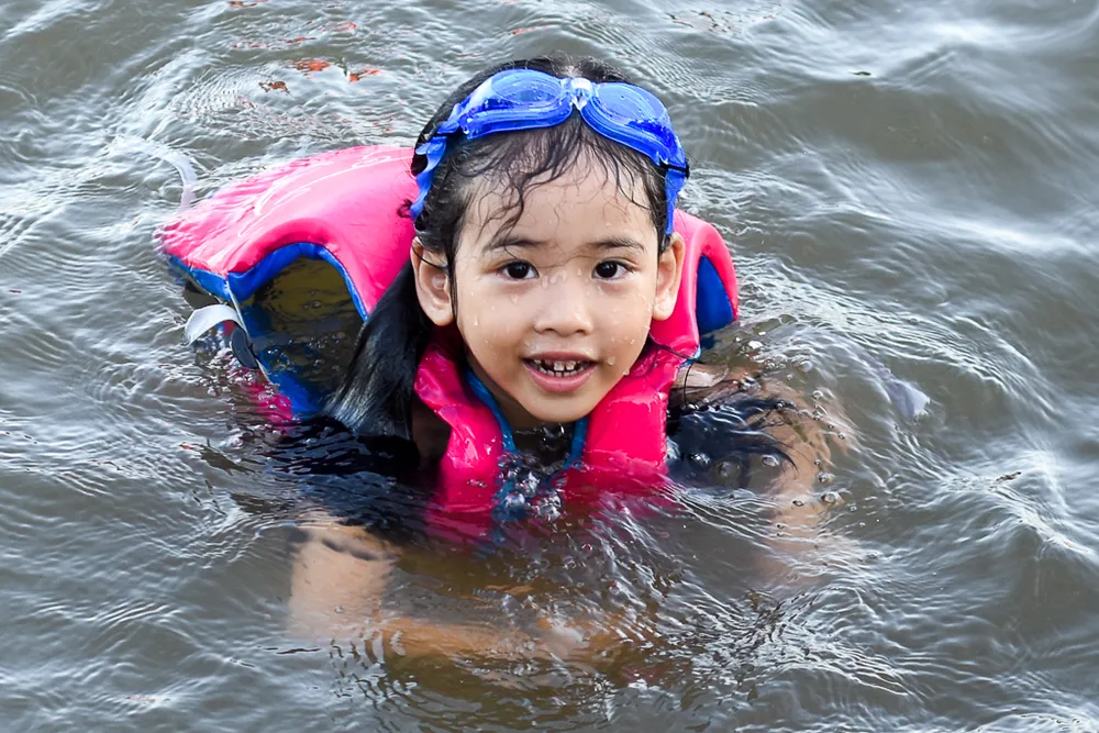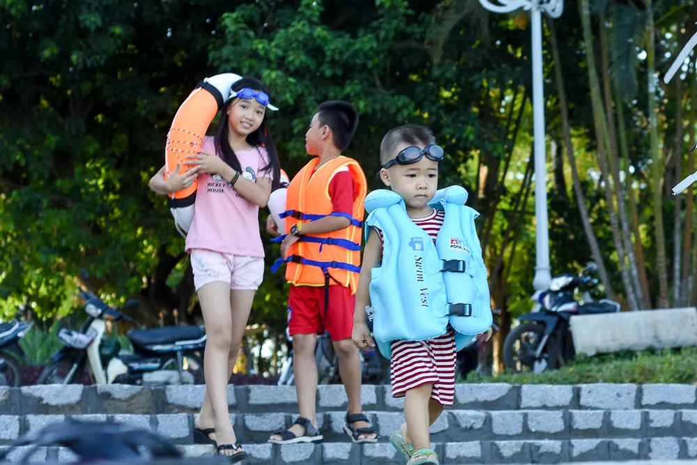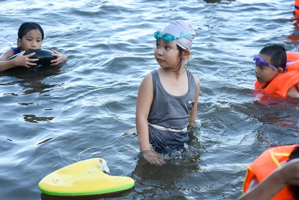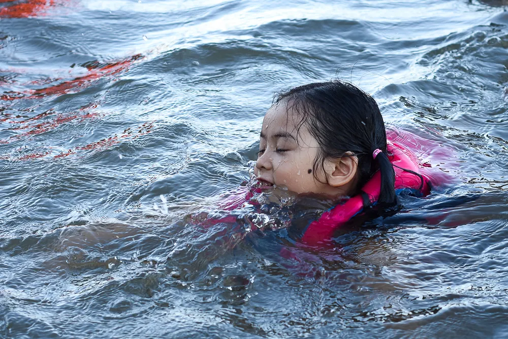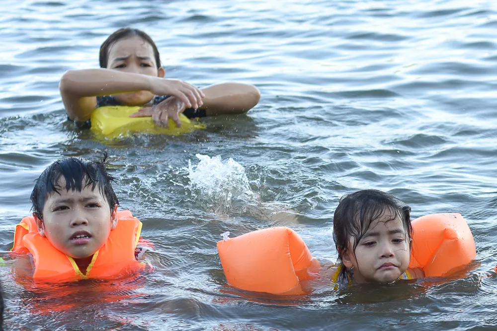 Nhiều em nhỏ từ 2 đến 5 tuổi cũng có mặt trên sông khiến người nhà không rời mắt. Ảnh: N.DO