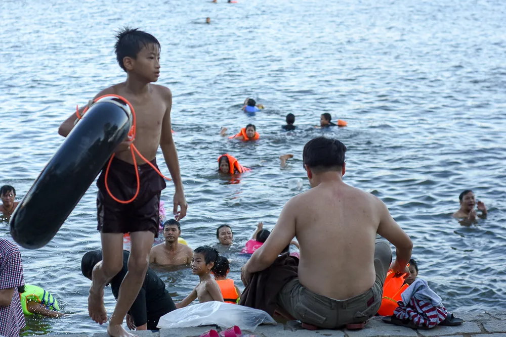 Nóng gần 40 độ, người dân cố đô ra sông Hương tắm mát