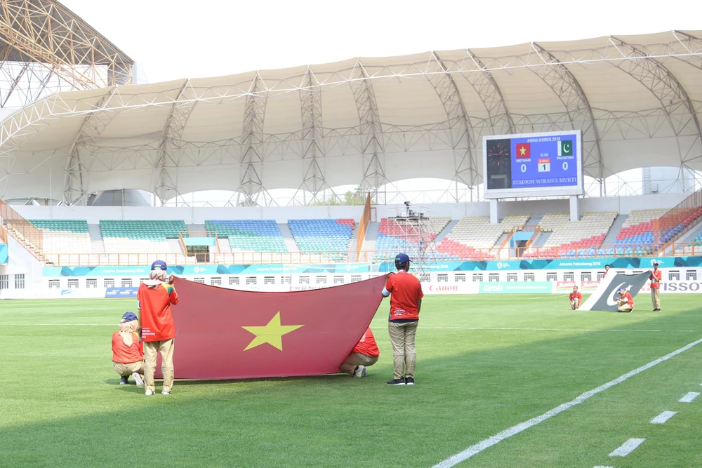 Dưới đây là hình ảnh sân Wibawa Mukti trước trận đấu giữa Olympic Việt Nam và Olympic Pakistan: