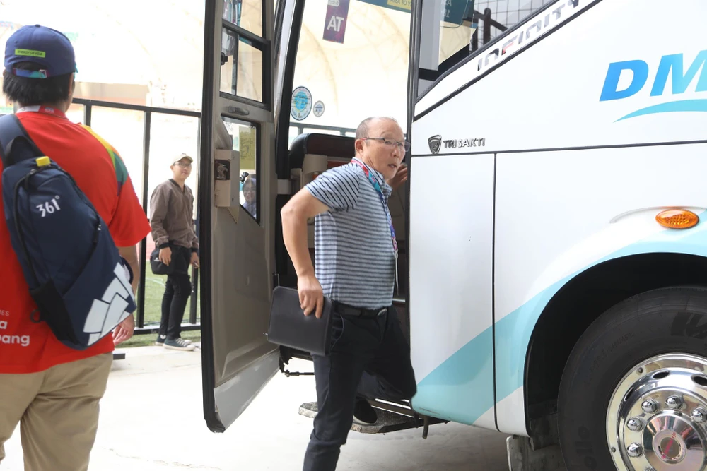 HLV Park Hang-seo bước xuống xe.