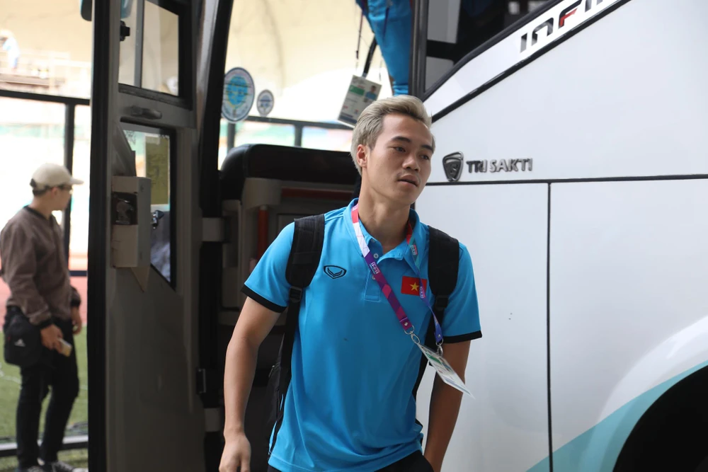 Các cầu thủ Olympic Việt Nam đã có mặt tại sân Wibawa Mukti chuẩn bị cho trận đấu với Pakistan.