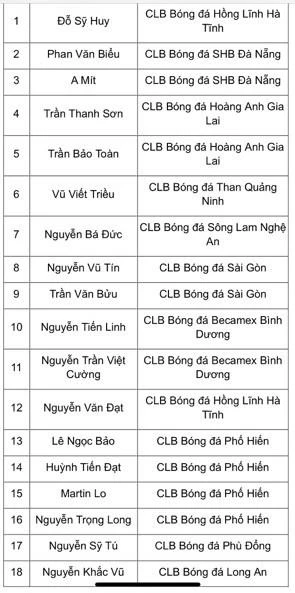 Danh sách các cầu thủ dự tuyển U-23 Việt Nam tập trung đợi 1