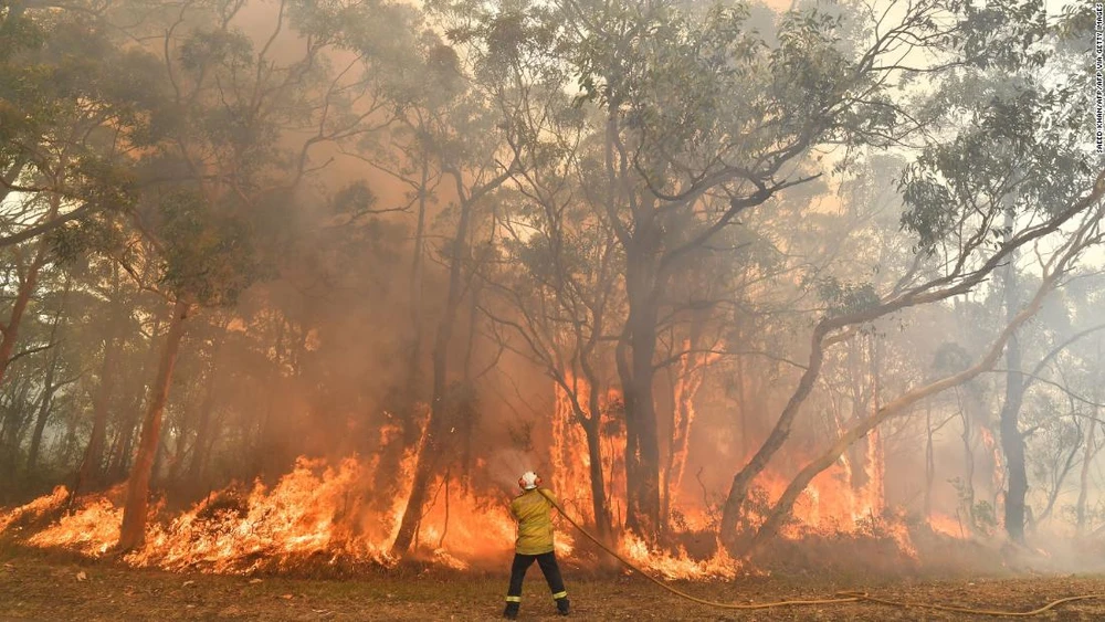 Một lính cứu hỏa Úc đang cố gắng dập lửa ở phía bắc Sydney vào ngày 10-12-2019. Ảnh: CNN