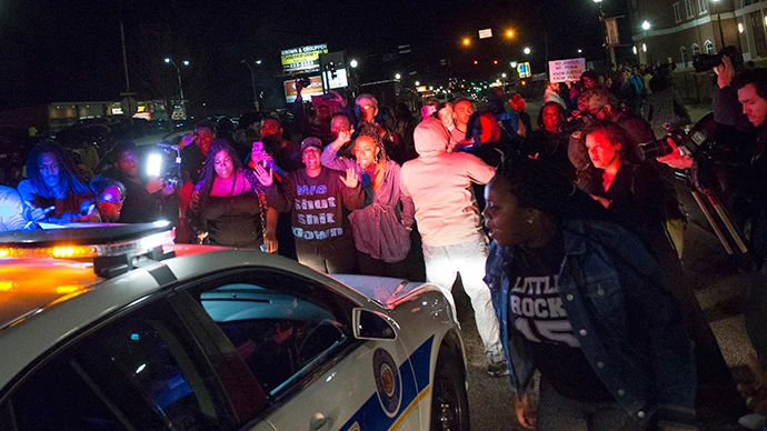 Theo hãng tin RT (Nga), có ít nhất hai cảnh sát đã bị nã súng trong cuộc biểu tình được tổ chức trước cửa đồn cảnh sát thành phố Ferguson.