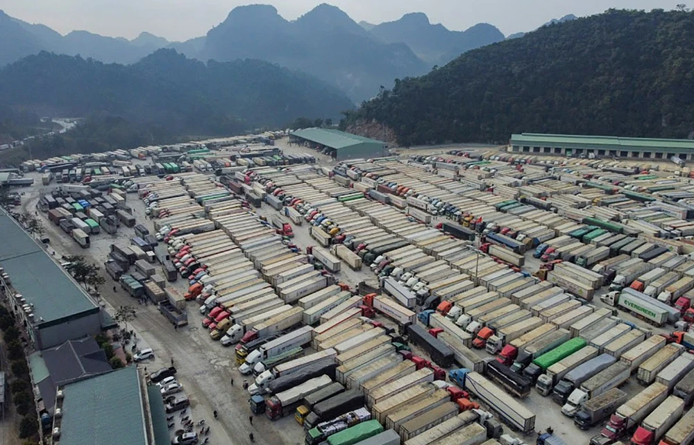 Hàng ngàn container nông sản bị ùn tắc tạicác cửa khẩu biên giới phía Bắc. Ảnh: ĐINH TÙNG