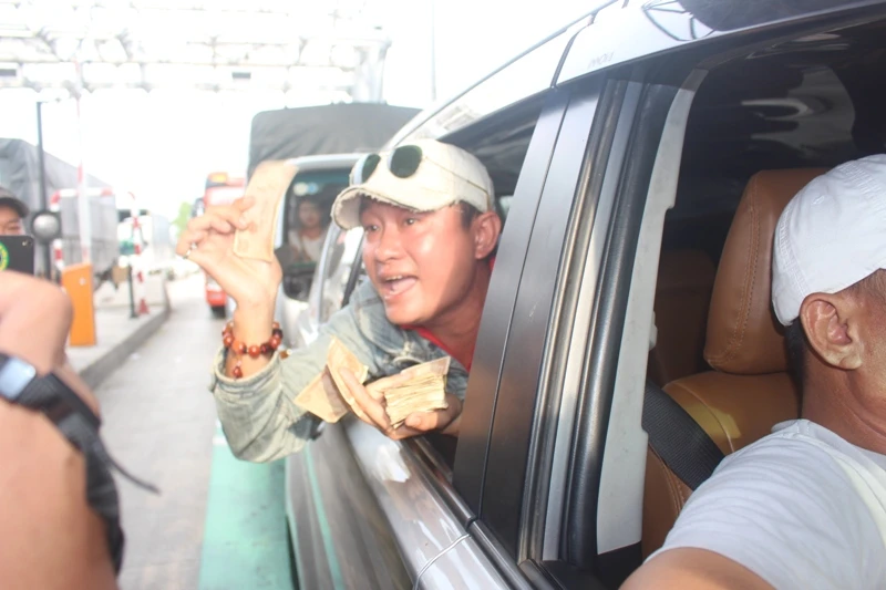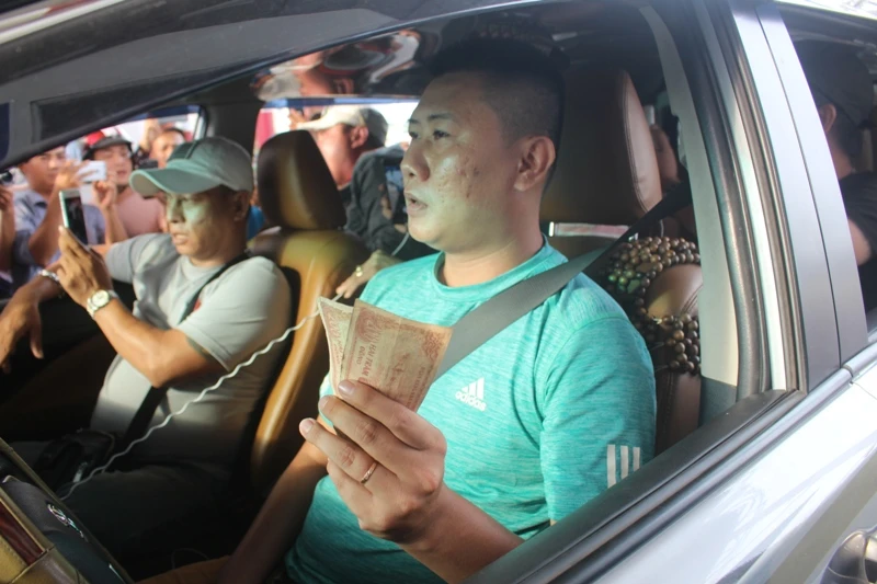 Dưới đây là một số hình ảnh PV ghi nhận việc tài xế dùng tiền lẻ mua vé qua trạm và phản đối, yêu cầu dời trạm BOT Cai Lậy.