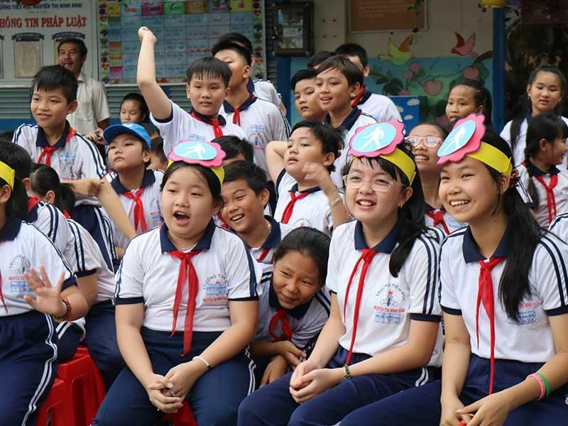 Học sinh Trường Tiểu học Nguyễn Thị Minh Khai, quận Gò Vấp, TP.HCM trong một tiết học về an toàn giao thông. Ảnh: NGUYỄN QUYÊN