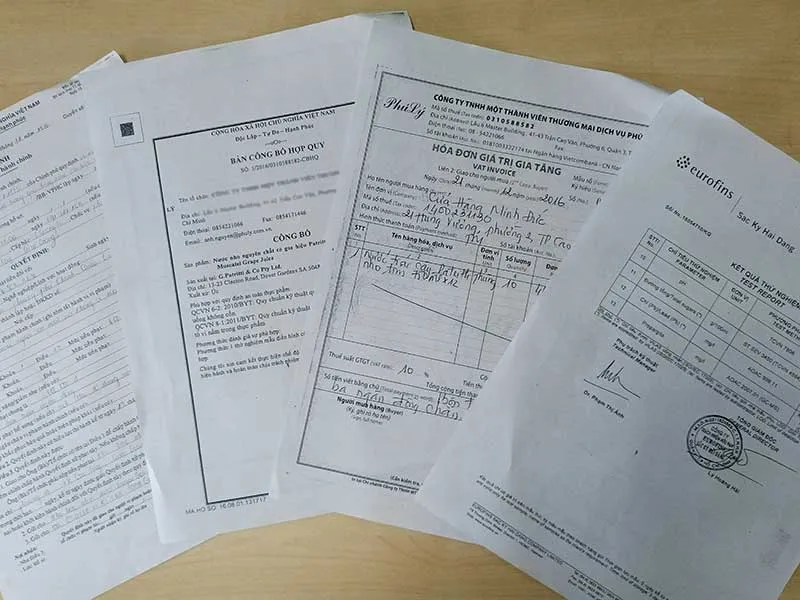 “Khách quen hối gấp nên tôi quên chuyện hóa đơn. Lúc nghe chủ xe báo, tôi vội nhờ em trai là M. mang theo hóa đơn của công ty cùng giấy tiếp nhận bản công bố hợp quy của Bộ Y tế, Cục An toàn thực phẩm cấp để chứng minh nguồn gốc hàng, em tôi bắt taxi chạy gấp xuống Công an huyện Cai Lậy xuất trình” - chị L. cho biết.