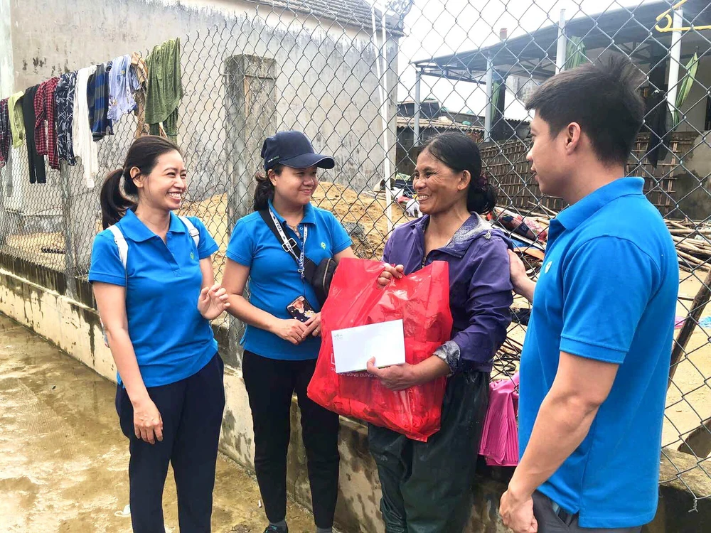 Cảm động khi được đoàn đến tận nơi thăm hỏi và hỗ trợ, chị Nguyễn Thị Bé (thôn Tân Dương, thị trấn Thuận An, huyện Phú Vang, tỉnh Thừa Thiên-Huế) rưng rưng chia sẻ: “Chưa kịp sửa chữa xong ngôi nhà sau trận bão bị tốc mái thì nay nhà đã bị sập hoàn toàn do cơn lũ vừa qua. Chồng bán vé số, tôi đi làm thuê, tổng thu nhập cả nhà chưa đến 5 triệu đồng. Trang trải chi phí sinh hoạt cho 6 thành viên đã khó khăn, nay cả gia đình còn mất trắng tài sản. Không biết nói gì hơn ngoài lời cảm ơn các mạnh thường quân đã động viên, hỗ trợ thêm kinh phí để cả gia đình bắt đầu lại từ đầu”.