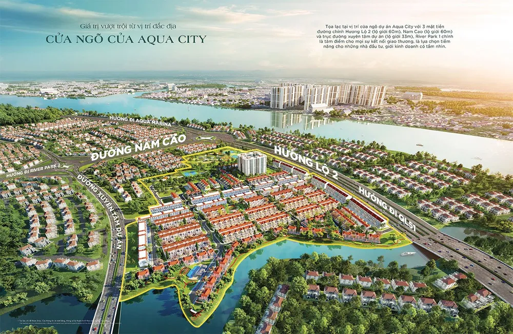 Dự án Aqua City là dự án tâm điểm ở khu vực phía Đông TP.HCM. Nằm ở vị trí cửa ngõ thông thương, hạ tầng giao thông thuận lợi, từ Aqua City, người dân có thể dễ dàng di chuyển đến trung tâm thành phố, các địa điểm phòng khám, trung tâm thương mại, trường học lớn.