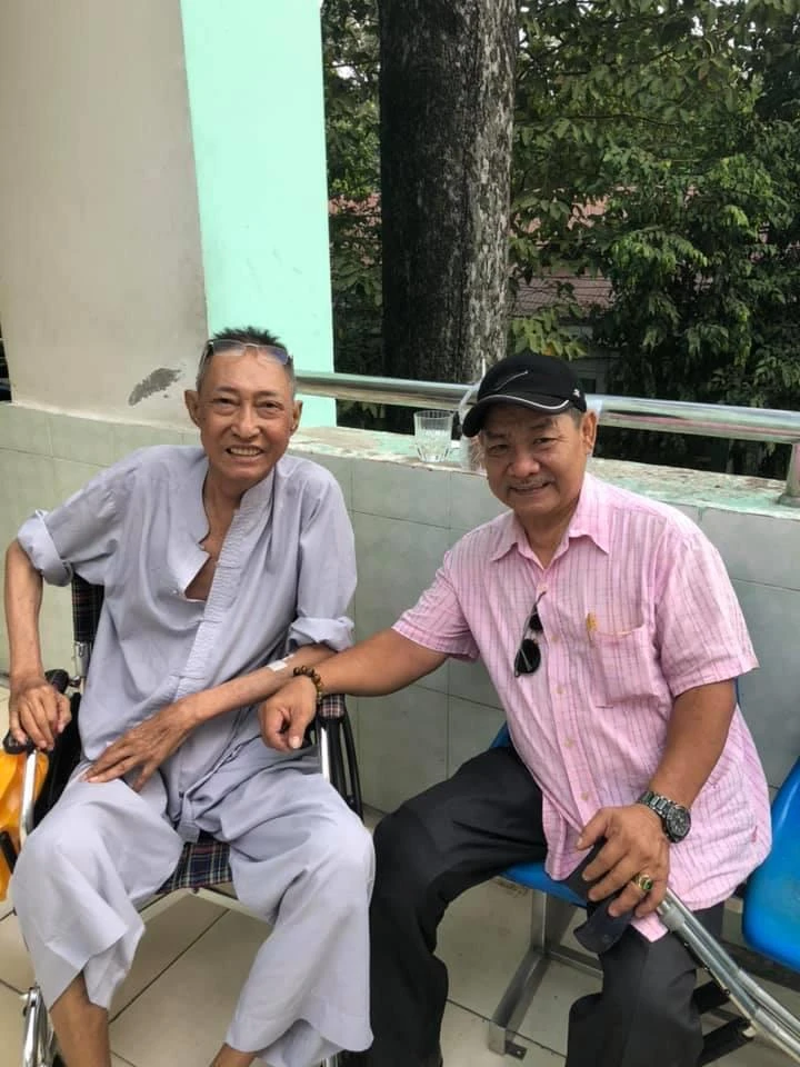 Anh Sáng - diễn viên Chim phóng sinh, vào thăm Lê Bình. Trong nhiều hoàn cảnh, Lê Bình vẫn giữ nụ cười lạc quan. Ảnh: FBNV.