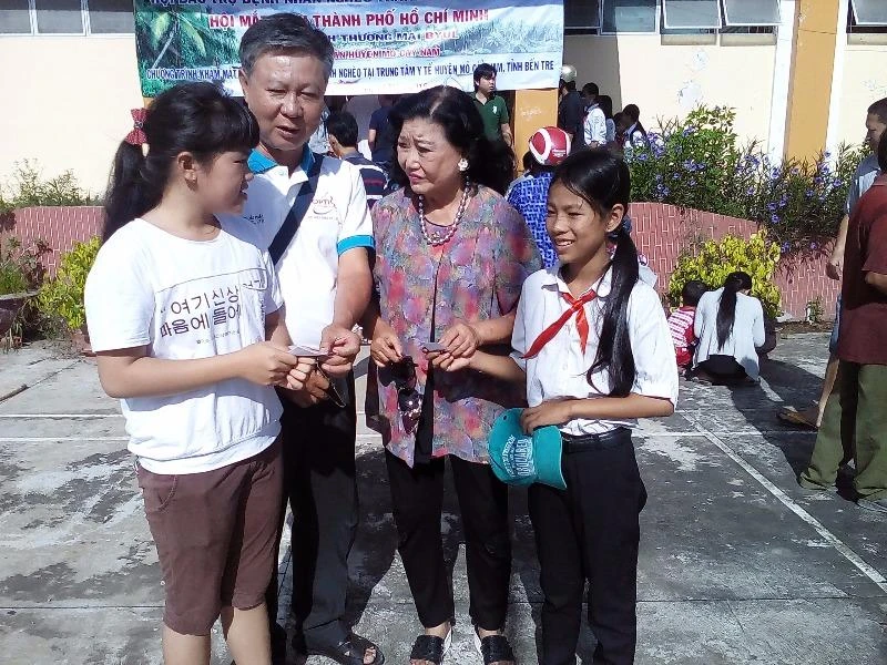 BS Nguyễn Phú Thiện, Chủ tịch Hội Mắt kính TP.HCM, cho biết ngoài thầy cô khó khăn, Hội Mắt kính TP.HCM còn đo mắt và tặng kính miễn phí cho học sinh nghèo của huyện Mỏ Cày Nam. "Hy vọng các em cố gắng học tập để không phụ công ơn dạy dỗ của thầy cô và sự quan tâm của các tổ chức xã hội" - BS Thiện nói.