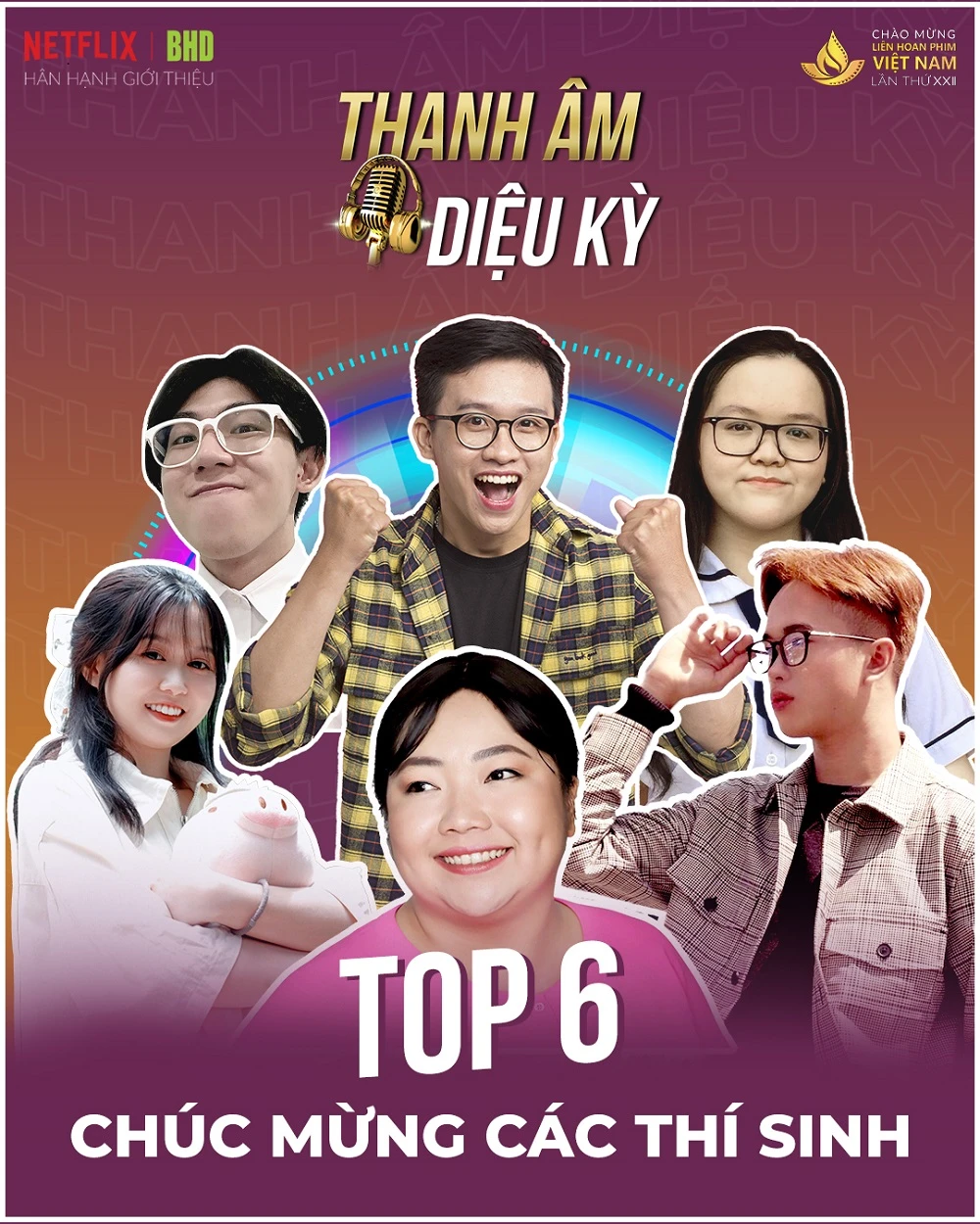 Tốp 6 thí sinh xuất sắc tham gia vào vòng chung kết Thanh âm diệu kỳ.