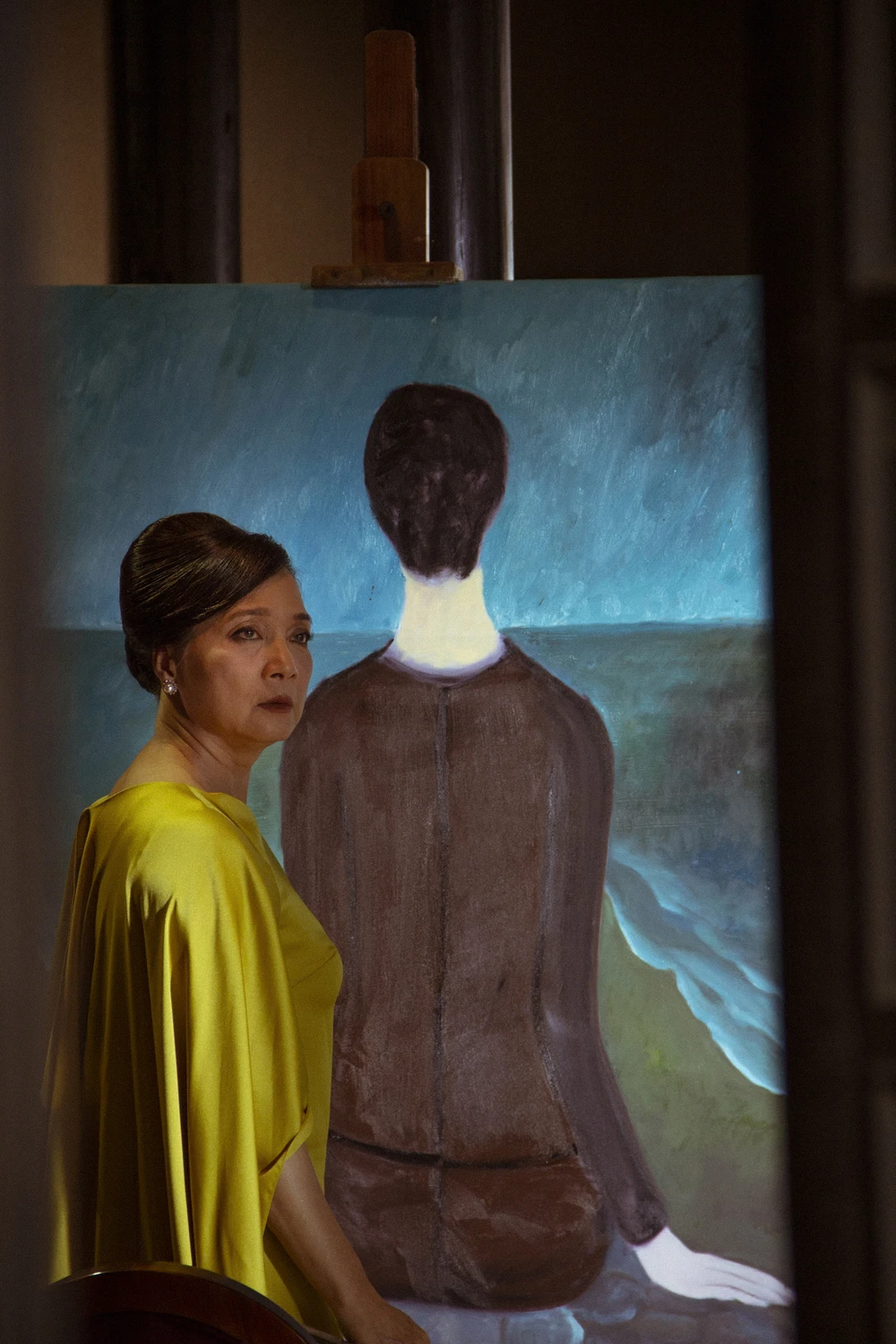 Bức tranh được sự giúp đỡ của nữ họa sĩ Bội Trân để hoàn thiện trước ngày quay để kịp phục vụ cho công tác ghi hình. NSND Lê Khanh cho hay: “Hình ảnh Thái Tuyết Mai ngồi quay lưng nhìn ra biển trong chiếc áo dài đen gây ám ảnh với tôi từ khi đọc kịch bản.