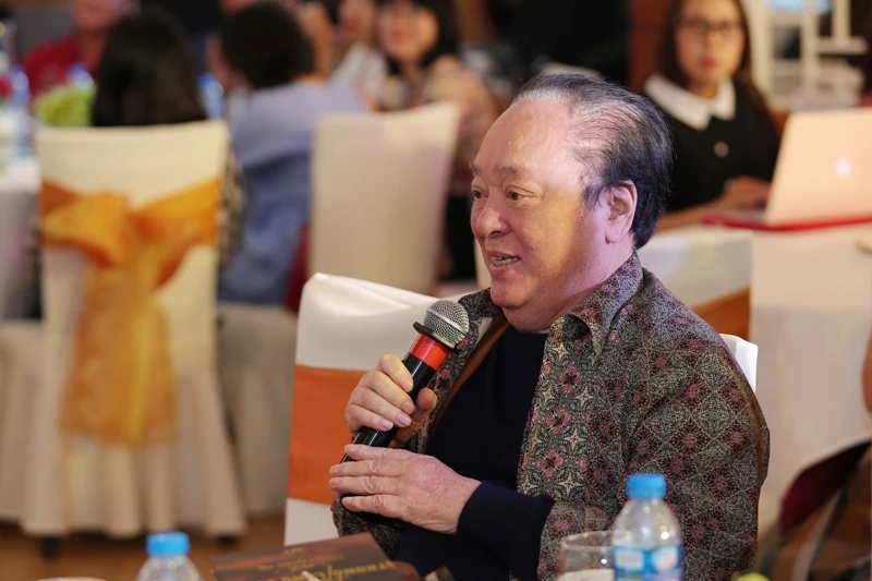 NSND Trung Kiên tại buổi giới thiệu sản phẩm mới của học trò Đào Nguyên Vũ.