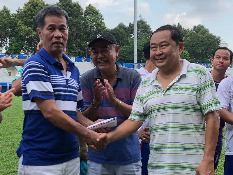 Ngồi trên khán đài, cựu trung phong Phan Trung Việt rưng rưng xúc động với nghĩa cử đẹp của đông đảo chiến hữu, cả những người chưa quen dành cho mình. Chính anh cũng không ngờ anh em luôn nhớ và thương mình, cả một thời tuổi trẻ dọc ngang cống hiến cho bóng đá TP.HCM. Ban huấn luyện CLB Sài Gòn và các cầu thủ gửi tặng anh món quà, một vài người yêu bóng đá âm thầm đến bên anh chia sẻ tấm chân tình.