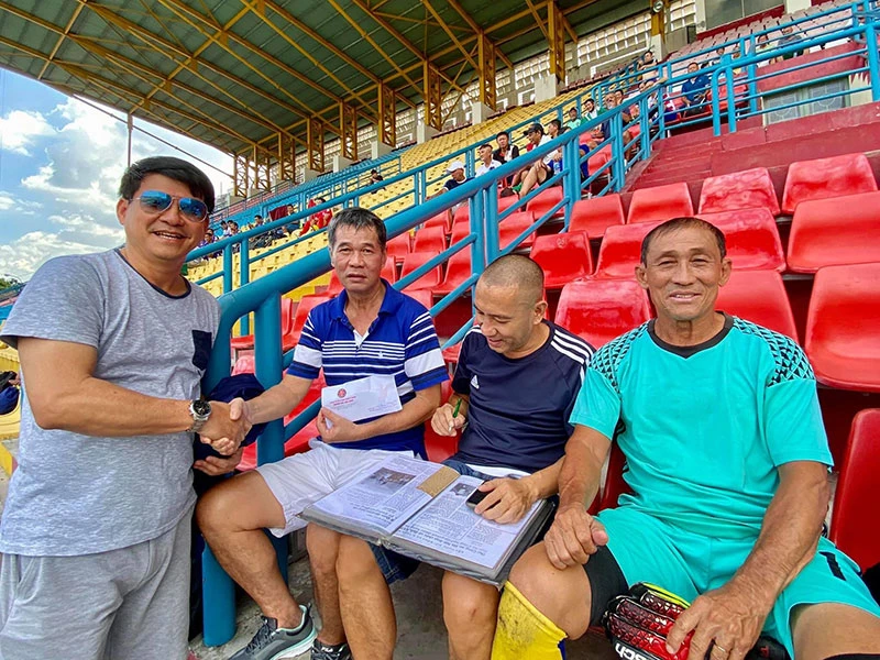 Cựu cầu thủ Trần Văn Phổ nay là lãnh đạo Công ty Bảo vệ Kiên Long cũng xỏ giày ra sân và ủng hộ đồng nghiệp ngày nào. Ảnh: CT