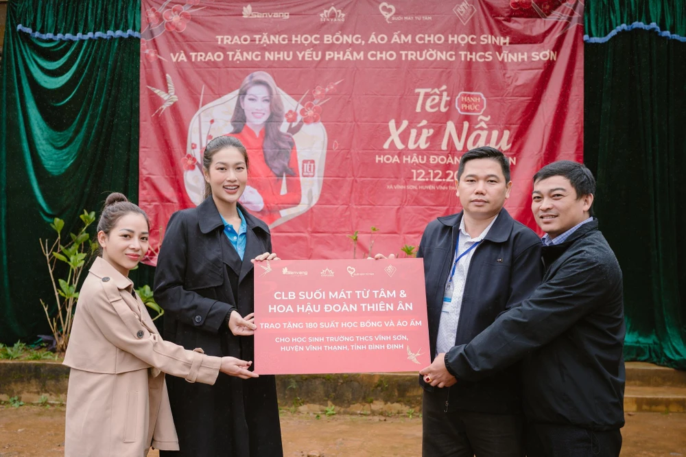 Hoa hậu Thiên Ân đã có mặt tại xã Vĩnh Sơn, huyện Vĩnh Thạnh, tỉnh Bình Định để thực hiện chương trình thiện nguyện “Tết hạnh phúc Xứ Nẫu”.