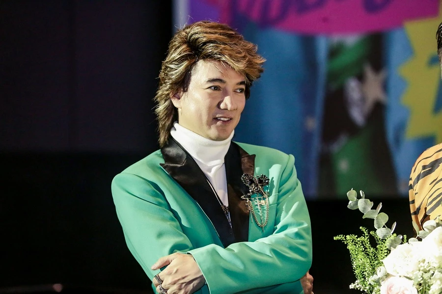 Đàm Vĩnh Hưng cũng kịp thay trang phục mới với vest xanh lá nổi bần bật.