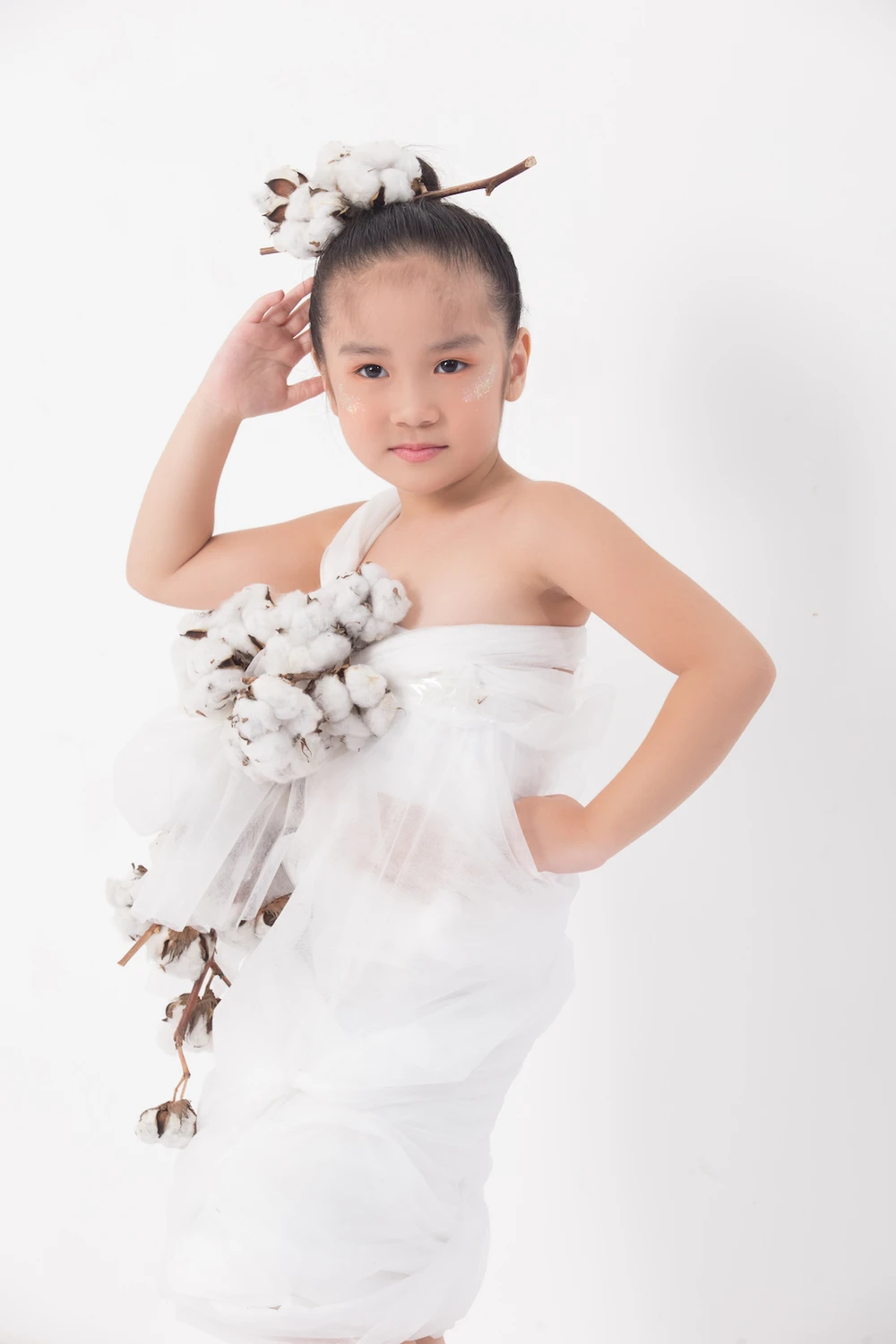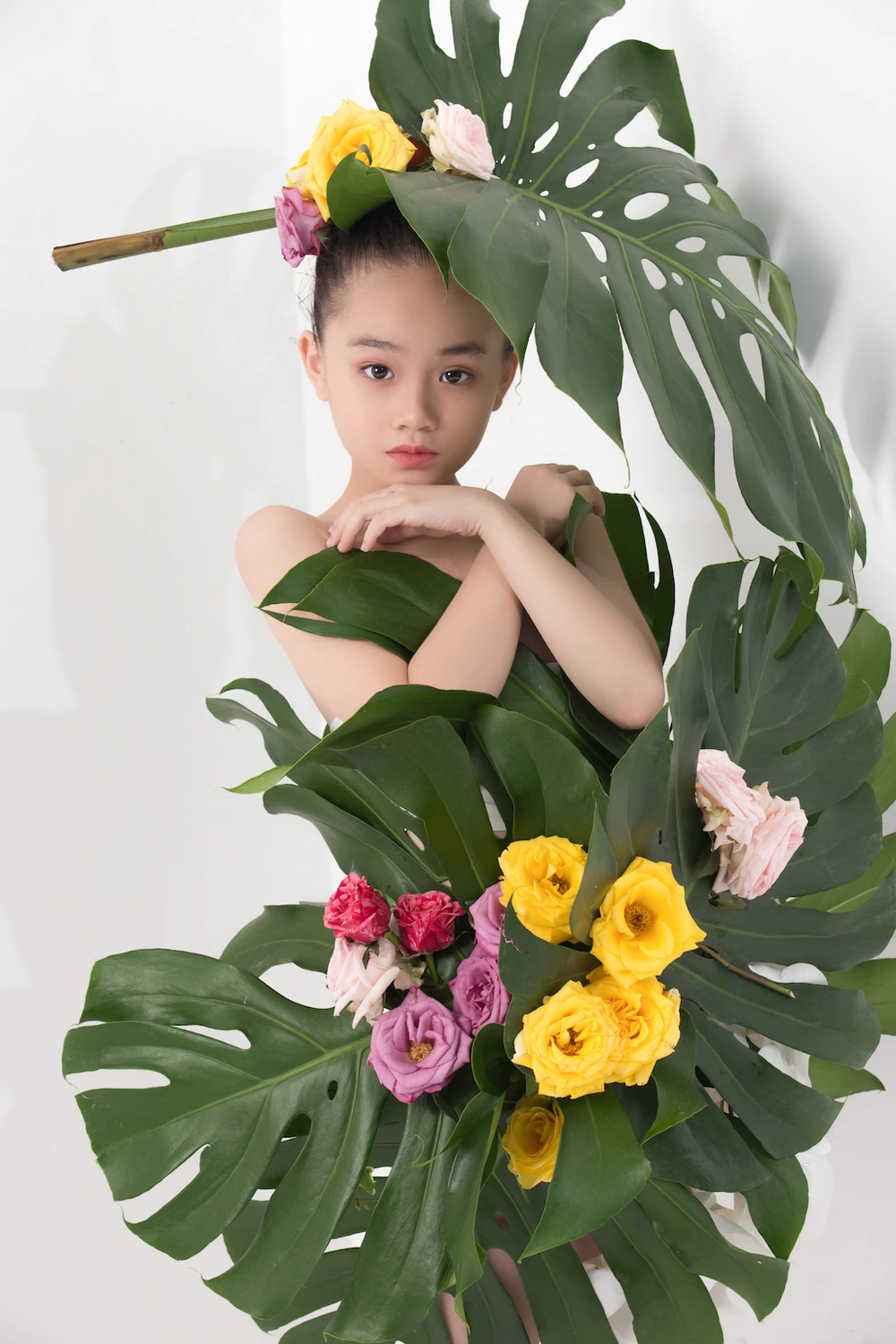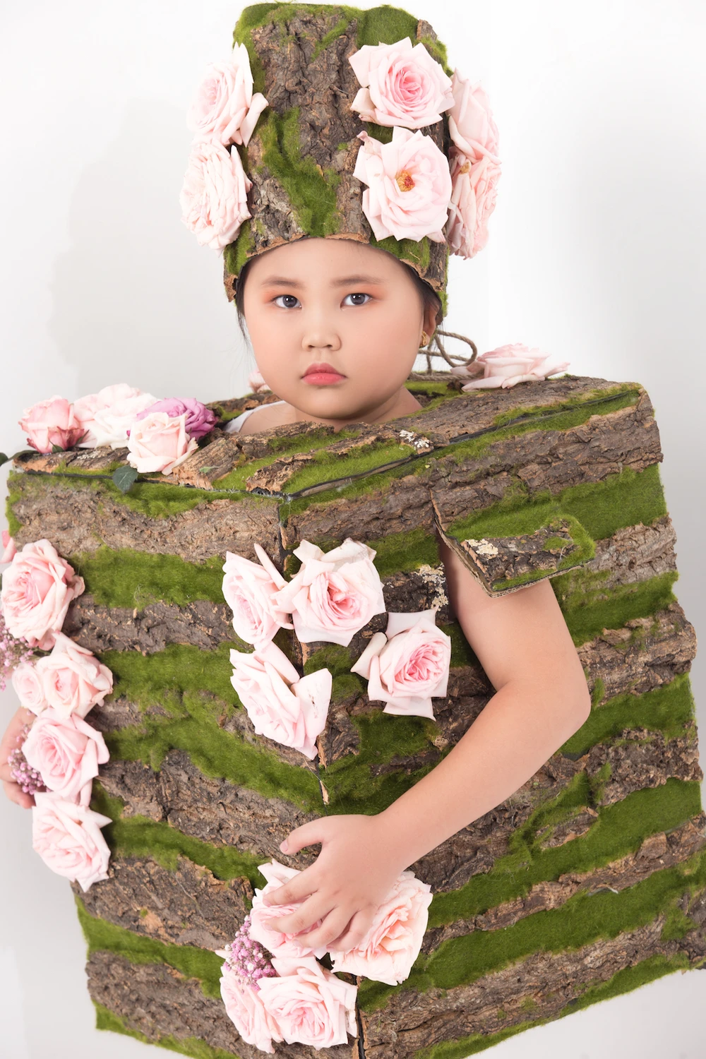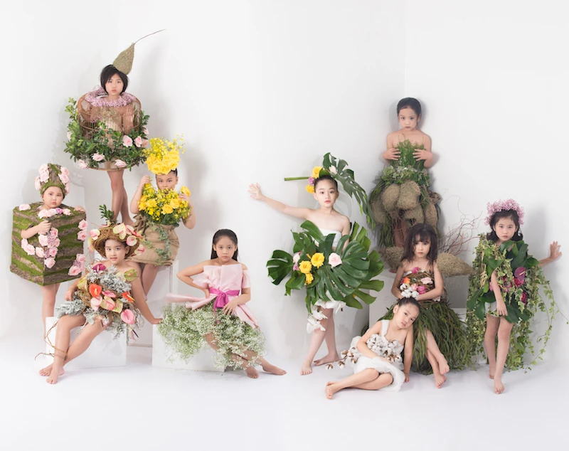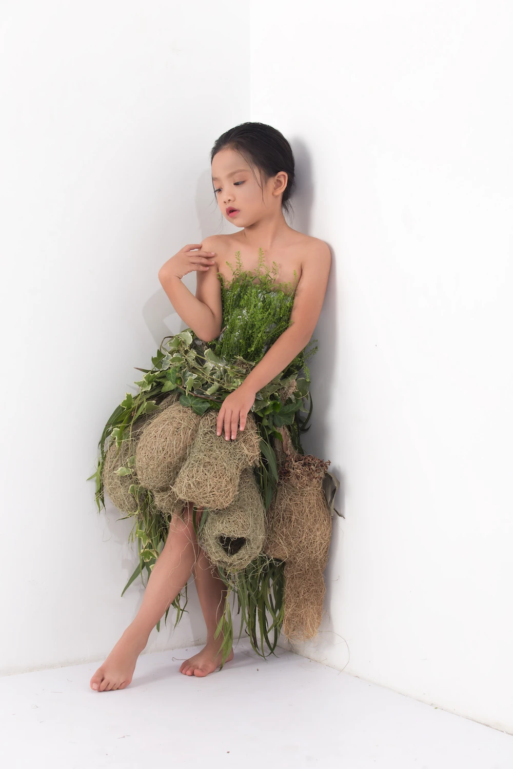 10 gương mặt mẫu nhí cũng đã thực hiện bộ ảnh thời trang với những thiết kế từ hoa, cỏ, và tre. Ảnh: BTC cung cấp