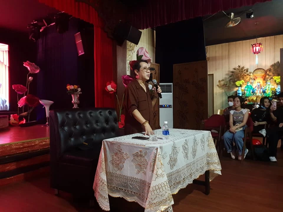 NSƯT Thành Lộc tại buổi giao lưu với các diễn viên trẻ. Ảnh: VĂN HÀ