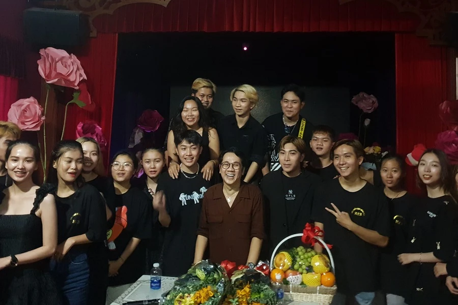 NSƯT Thành Lộc cùng các diễn viên trẻ chụp hình lưu niệm tại buổi giao lưu. Ảnh: VĂN HÀ