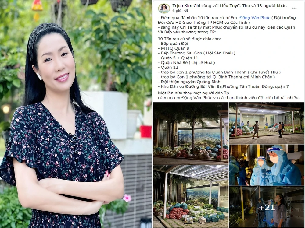 Sáng nay, 13-8, trên trang cá nhân NSƯT Trịnh Kim Chi chia sẻ về việc nhận và phân phát 10 tấn rau củ cho người dân cũng các bếp ăn từ thiện trên địa bàn thành phố.