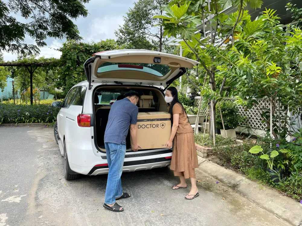 Chiều 30-9, NSƯT Trịnh Kim Chi chia sẻ trên trang cá nhân: “Hôm nay hai vợ chồng tranh thủ đi lấy thuốc. Lại có thêm 1.000 phần thuốc giành cho bệnh nhân F0 đang điều trị tại nhà.