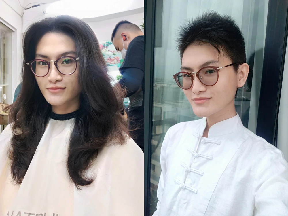 Tín Thái trước và sau khi cắt tóc. Ảnh: NVCC