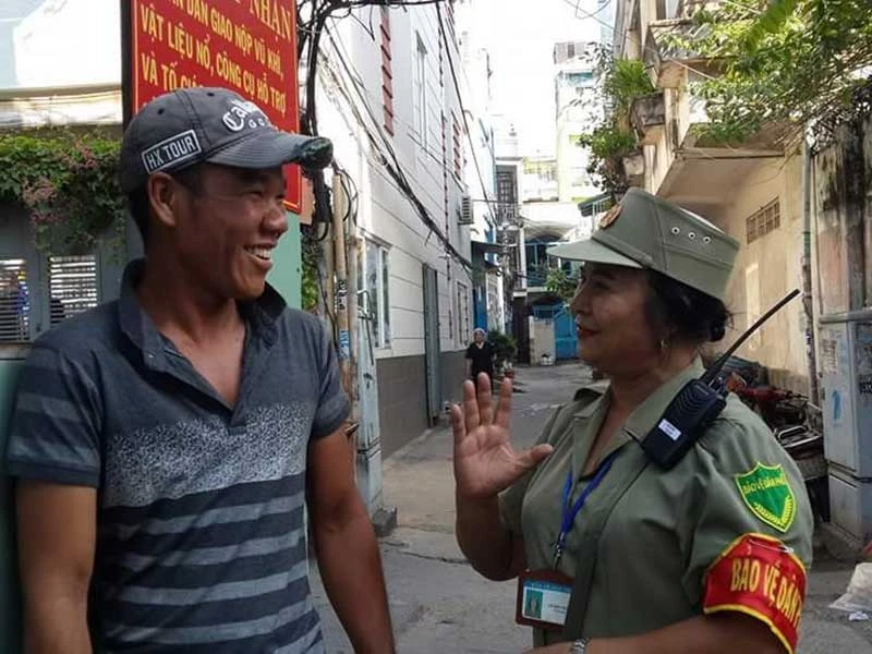 6 giờ sáng mỗi ngày, người đi ngang qua chốt dân phòng nằm trên đường Vạn Kiếp (khu phố 6, phường 3, quận Bình Thạnh, TP.HCM) đều quen thuộc với hình ảnh người phụ nữ khỏe mạnh mặc bộ đồng phục, đeo bảng hiệu, đội mũ tươi cười chào hỏi bất cứ ai đi ngang qua.