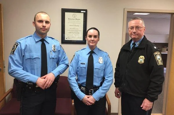 Ba cảnh sát trong đó có nữ cảnh sát Ashley Guindon 29 tuổi được điều tới giải quyết một vụ xung đột gia đình.