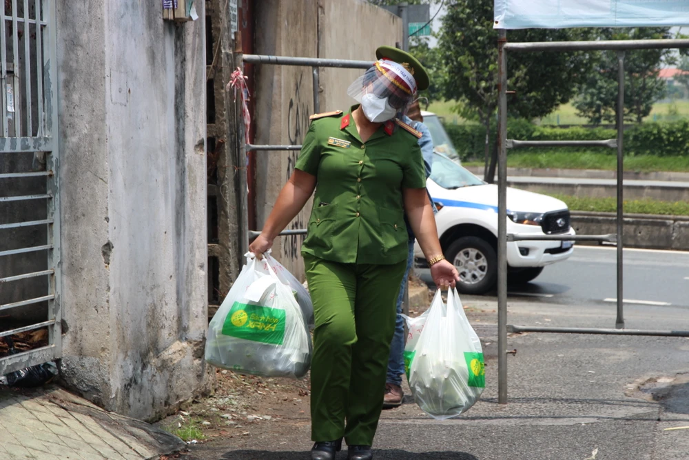 Trong những ngày TP.HCM tăng cường siết chặt giãn cách xã hội từ ngày 23-8, các lực lượng ở địa phương trong đó có công an phường đã cùng chung tay đi chợ giúp người dân nhằm đảm bảo việc “ai ở đâu ở yên đó”.