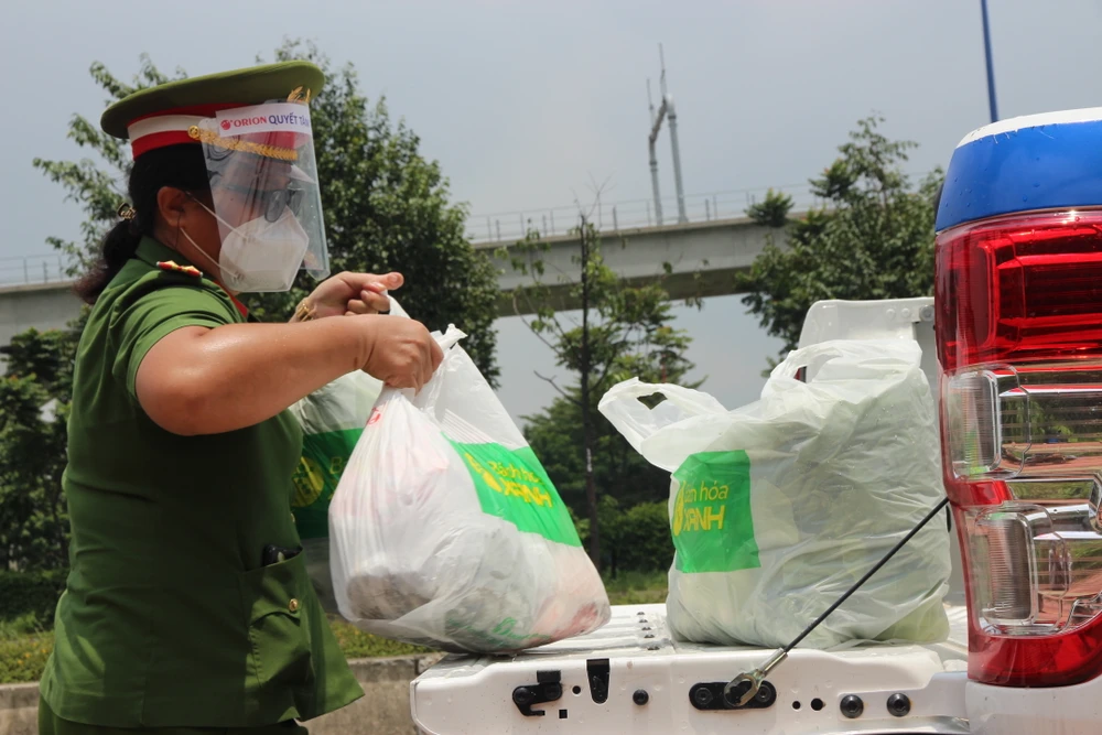Các đơn hàng sau đó được Trung tá Hạnh chở đến các khu phong toả đưa cho người dân. Ảnh: TS