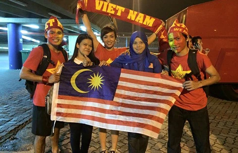 Hoàng Yến (giữa) cùng với các CĐV Malaysia giao lưu và học hỏi.Ảnh: XUÂN HUY