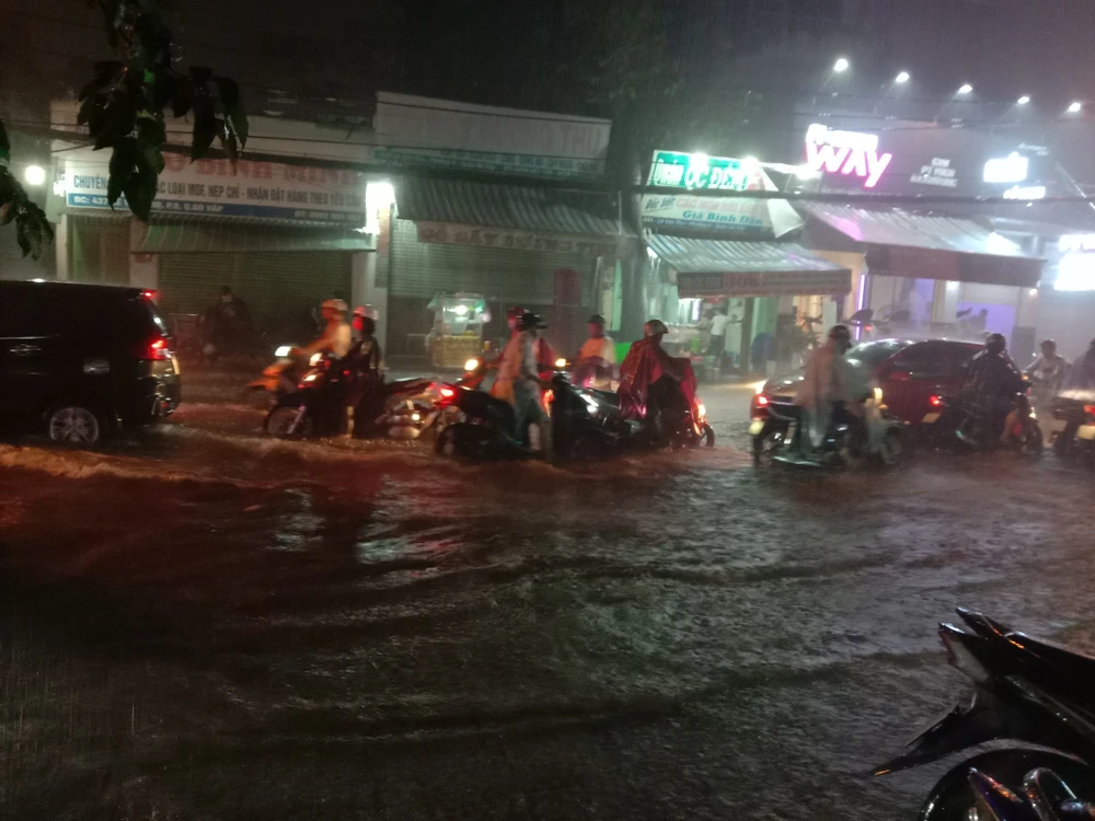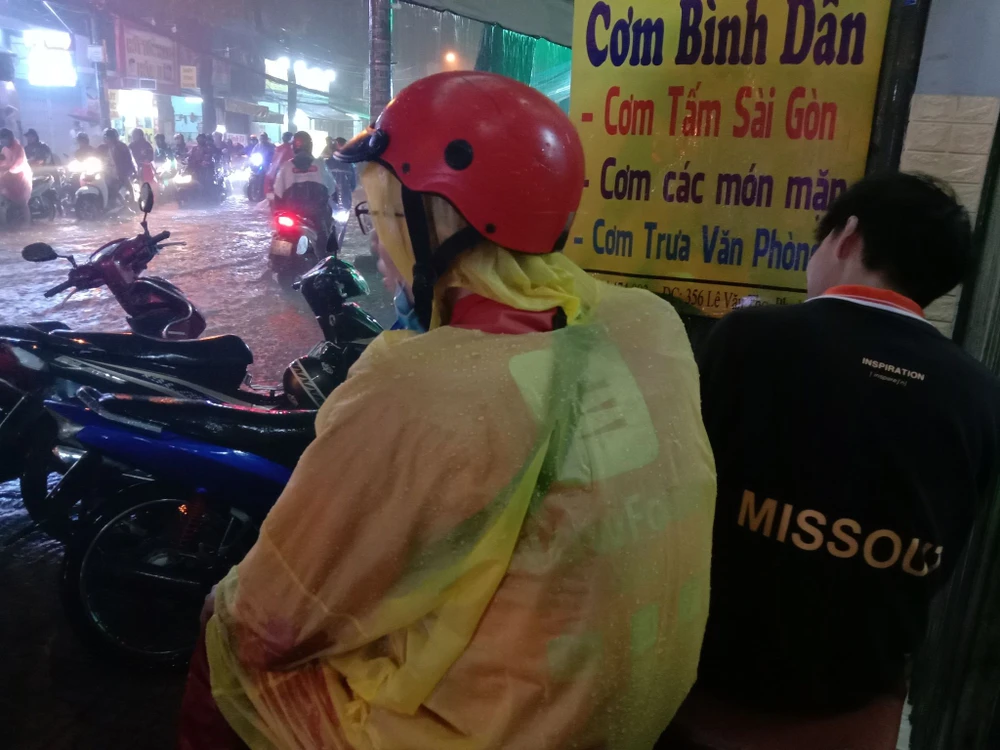 Chiều muộn 14-9, nhiều nơi trên địa bàn TP.HCM có mưa rất to gây ngập lớn. Riêng tại quận Gò Vấp, hơn 2km đường Lê Văn Thọ chỉ trong ít phút nước đã phủ trắng, nhiều đoạn ô tô không còn nhìn thấy bánh. Một loạt phương tiện chết máy, nhiều người phải đội mưa hì hục lội.