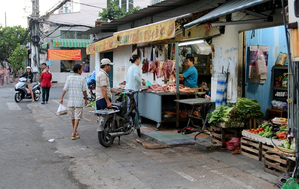 Nhiều hộ sau khi nghe bà Dung nhắc nhở đã dọn hàng vào bên trong. Ảnh: THANH TÚ