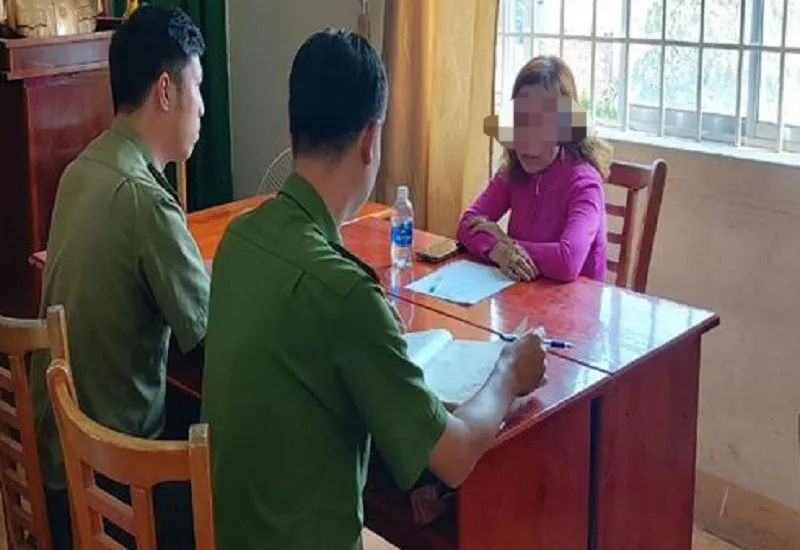 Công an làm việc với Hương. Ảnh: CAĐN