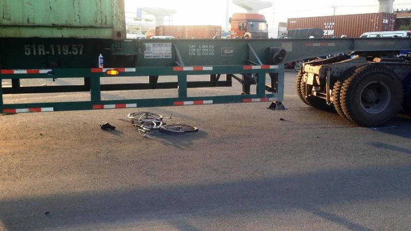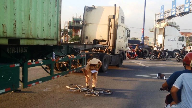 Theo thông tin ban đầu, khoảng 16 giờ chiều 3-12, xe container biển số 51C-136.73 chạy trên đường nội bộ của Khu công nghệ cao (ở phường Hiệp Phú, quận 9, TP.HCM) ra xa lộ Hà Nội. Khi vừa ra khỏi cổng Khu công nghệ cao khoảng 200 m, xe này va chạm với xe đạp chạy cùng chiều do một nữ công nhân điều khiển.