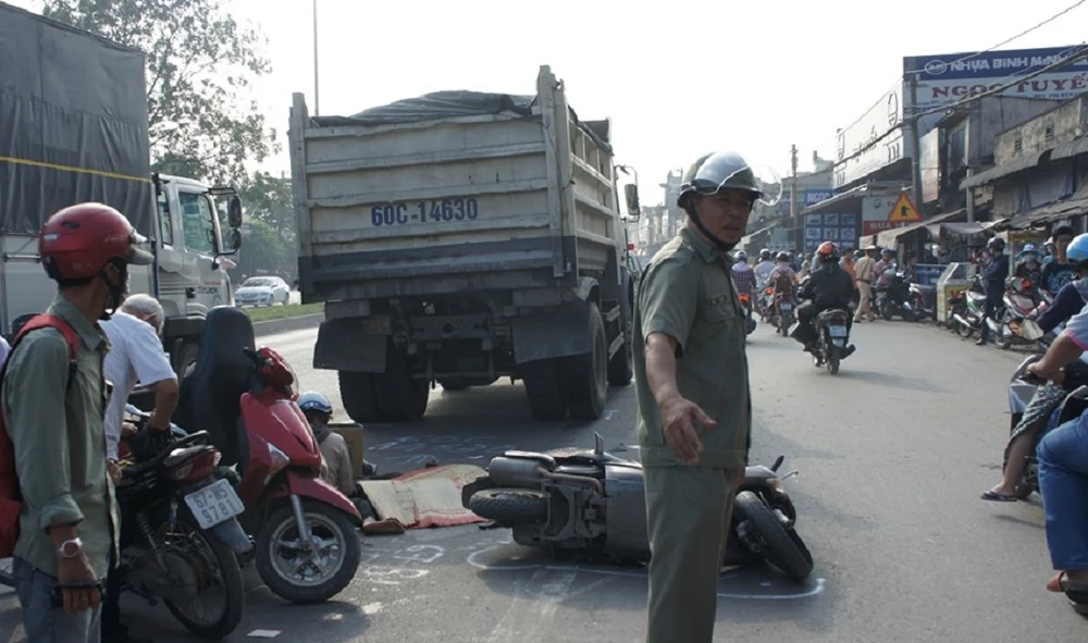 Hiện trường vụ tai nạn giao thông thương tâm.