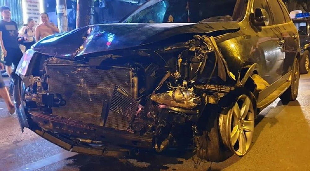 Tại hiện trường, chiếc ô tô biến dạng hoàn toàn, lốp vỡ, vành méo, túi khí ở vô lăng nổ. Tài xế có biểu hiện sử dụng chất kích thích.
