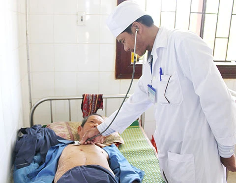 Ông Nguyễn Xuân được BS Thạch Cảnh Đoàn khám bệnh. Ảnh: VÕ QUÝ
