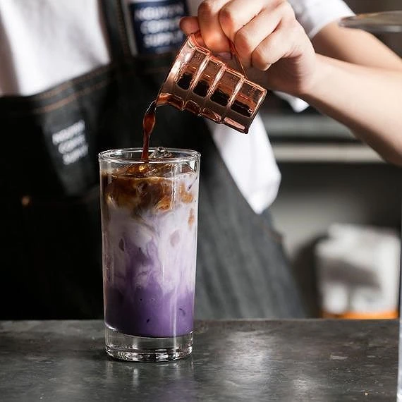 Đóng góp đáng kể nhất của Nguyen chính là món cà phê đá Ube Latte trông rất bắt mắt, có màu tím quyến rũ khi kết hợp với bột khoai lang tím Ube, va-ni, si-rô và nước cốt dừa.