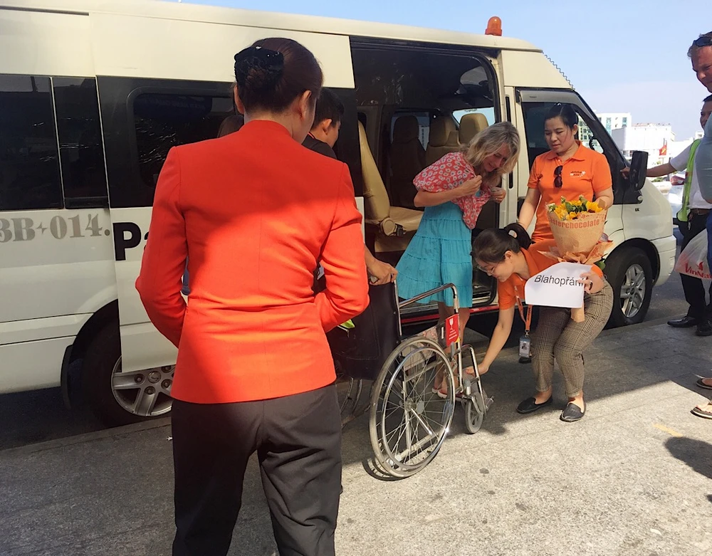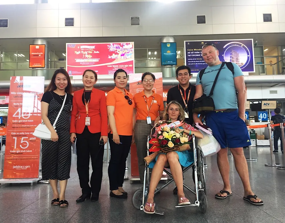 Được biết, chuyến bay BL587 chở nữ hành khách và người thân cất cánh từ Đà Nẵng lúc 16h42 và hạ cánh sau hơn 1 giờ bay. Tại sân bay Tân Sơn Nhất, Jetstar Pacific cũng bố trí xe ô tô riêng và xe lăn để hỗ trợ. Nữ hành khách sẽ ở lại TP.HCM nghỉ dưỡng sức khỏe một thời gian, trước khi thực hiện tiếp chuyến du lịch đến điểm mới.
