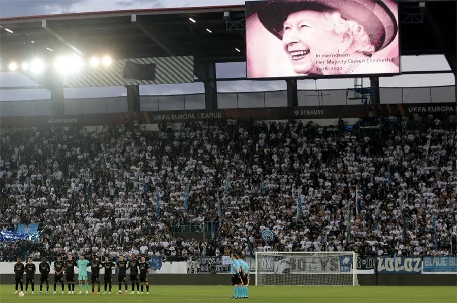 Tin tức về Nữ hoàng Anh qua đời diễn ra ngay trước khi nhiều đội bóng Anh như Manchester United, Arsenal, West Ham đá giải Europa League, trong đó MU và West Ham đá trên sân nhà tại Anh ở Old Trafford và London. Cả hai trận đấu này đều được phép diễn ra.