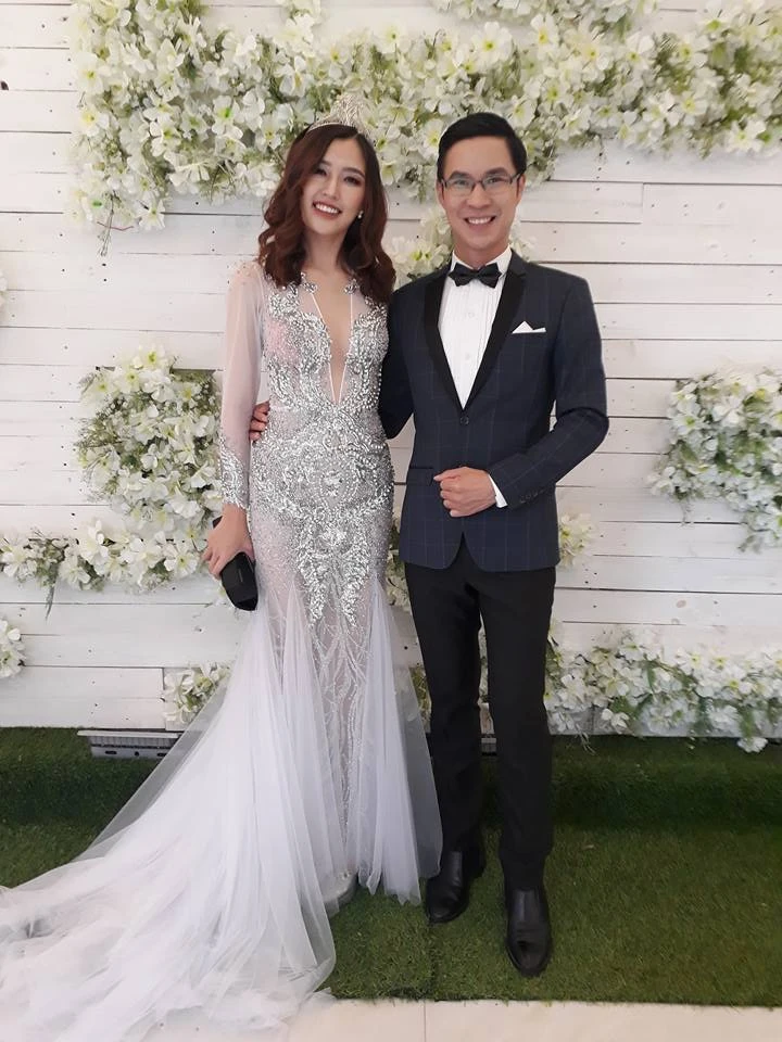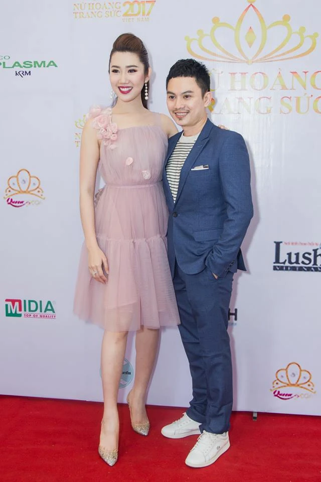 Phương Chi khoe sắc bên MC Anh Quân.