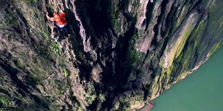 Luo Dengping có thể leo lên những vách đá 100m, dựng đứng mà không cần bất cứ dụng cụ hỗ trợ nào. Ảnh: BBC