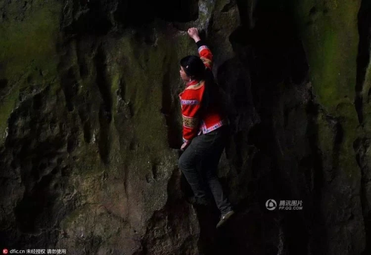 Hàng ngày, cô phải leo lên vách núi 2 lần để biễu diễn cho khách du lịch xem. Ảnh: China.com