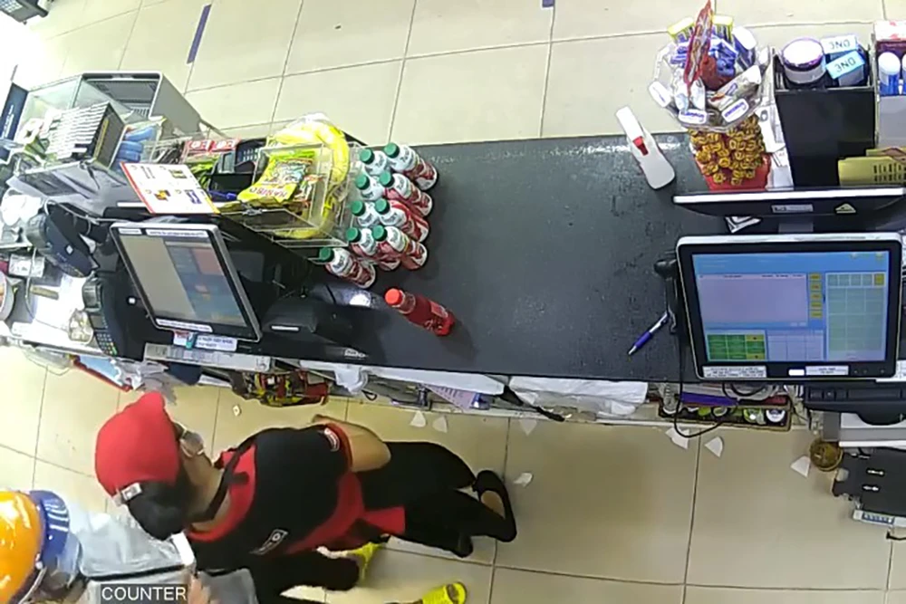Người này đến quầy thu ngân để tính tiền. Trong lúc nữ nhân viên đang tính tiền thì bất ngờ vị khách rút dao, kề vào cổ dọa giết, buộc mở hộc tiền.
